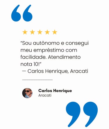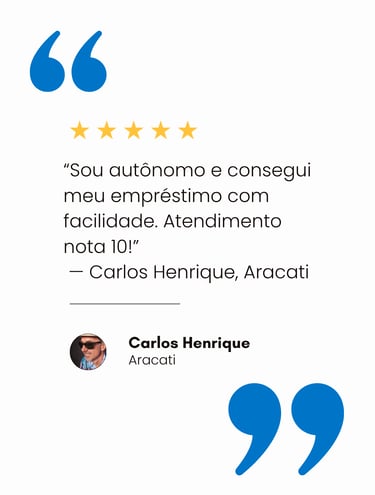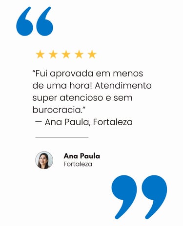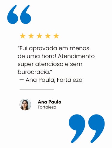 Com atuação em Fortaleza, Aracati e Juazeiro do Norte, ajudamos empreendedores, CLTs e empresários a conquistarem seus objetivos sem burocracia — com aprovação rápida e total segurança em cada etapa do processo.